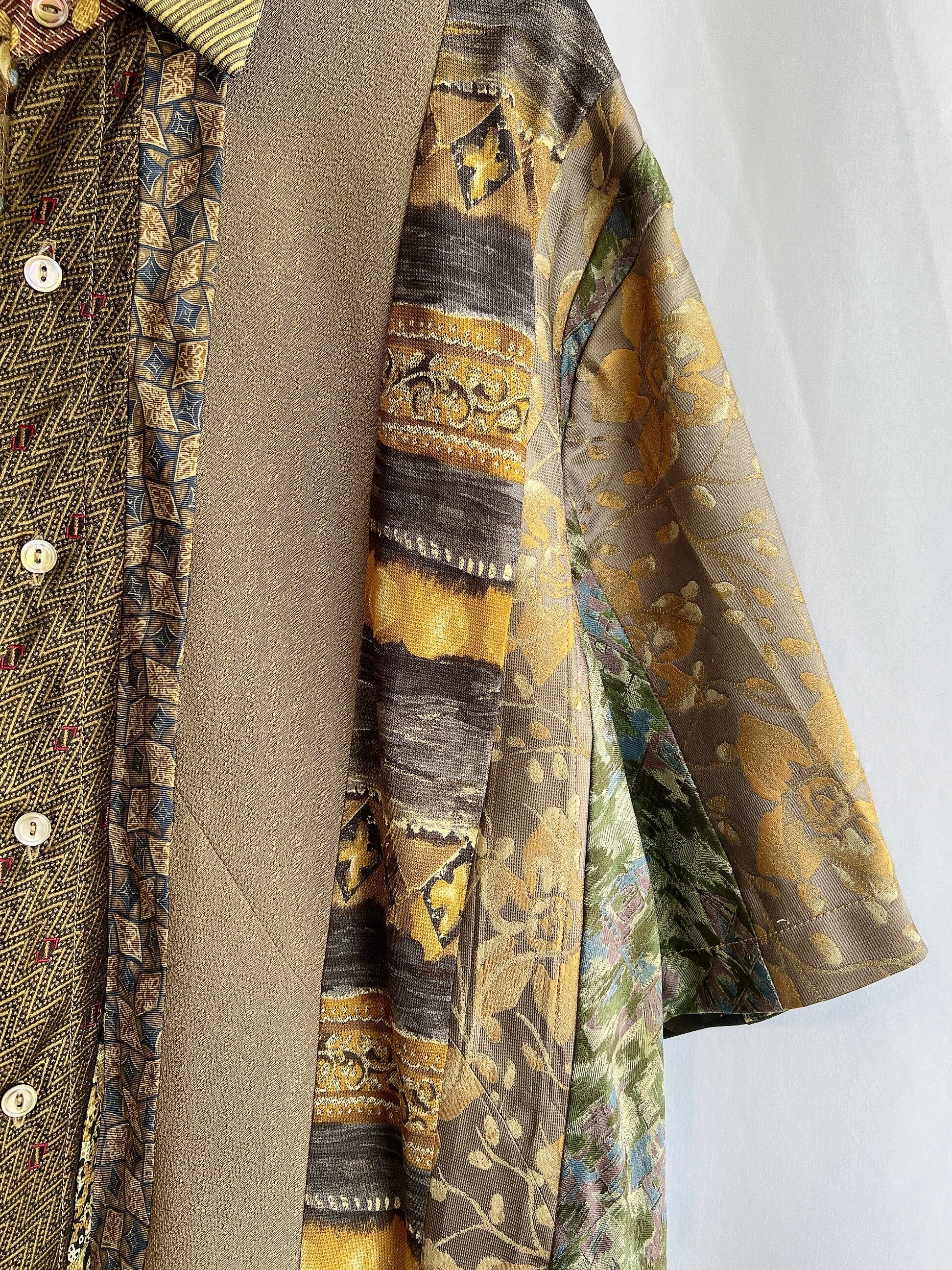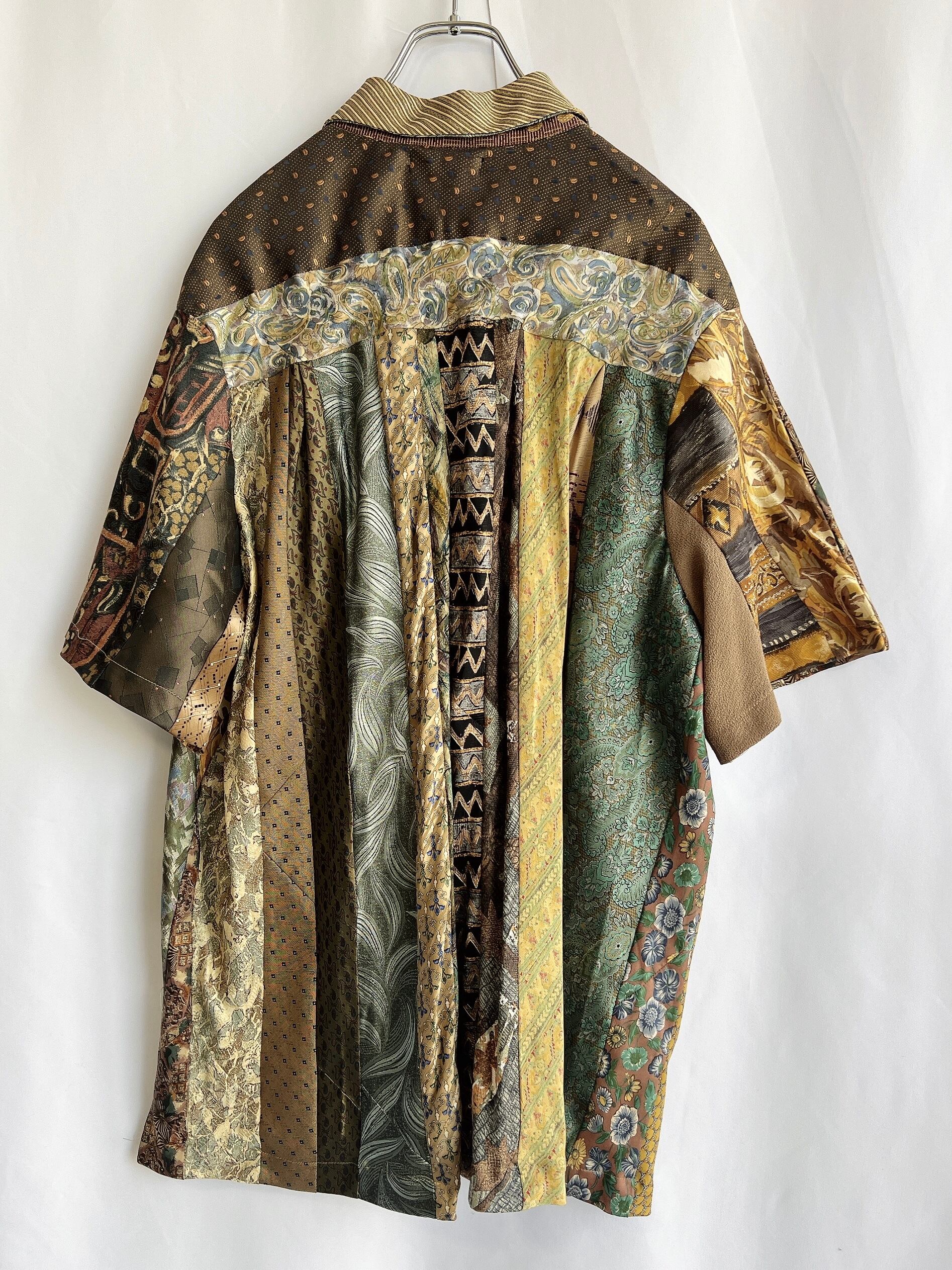 【KOH ISHIGURO】"再構築" REMAKE vintage tie striped patchwork short sleeve shirt