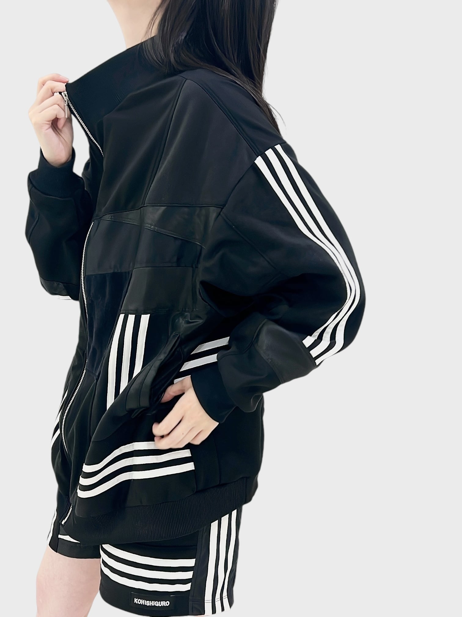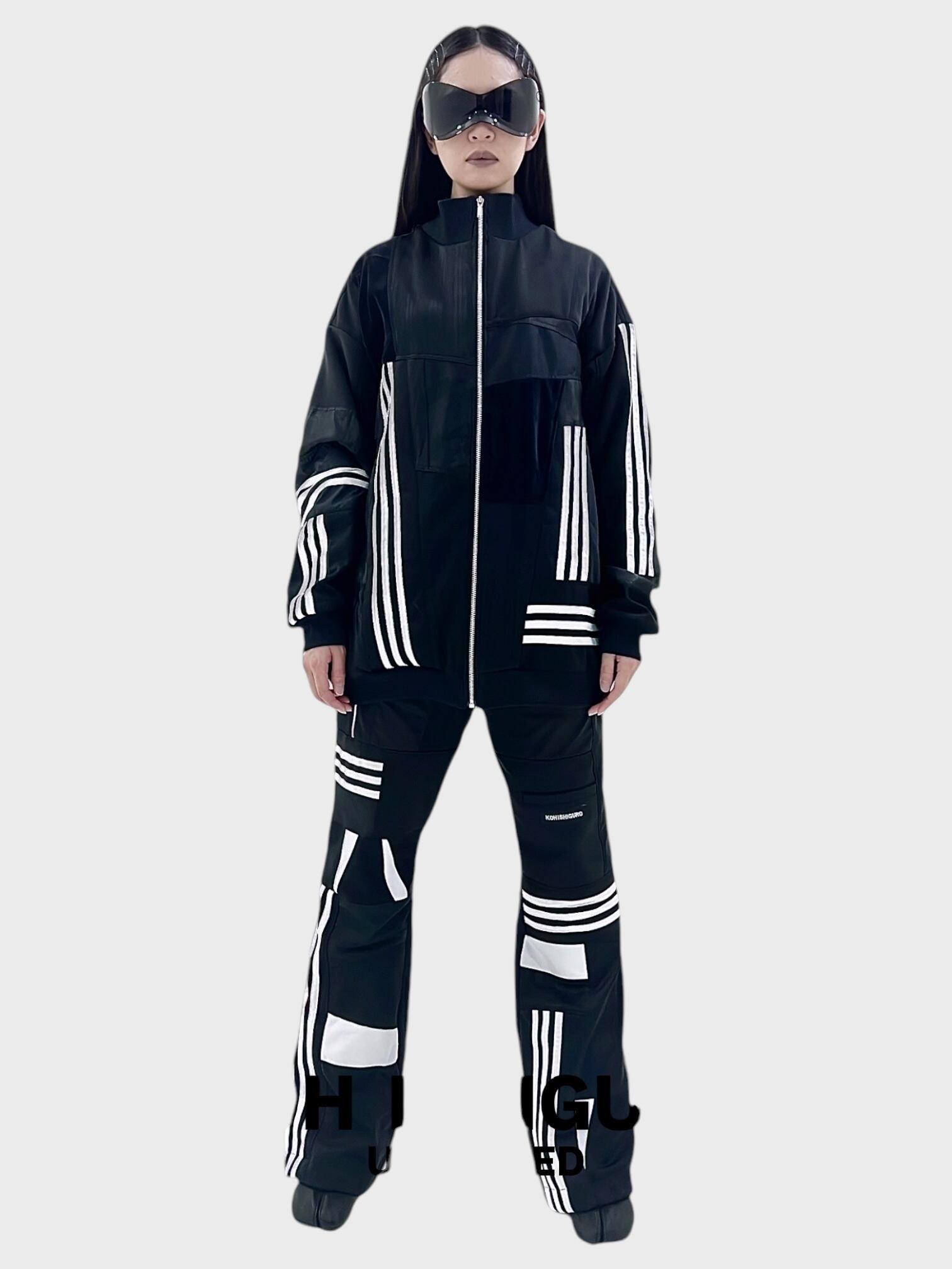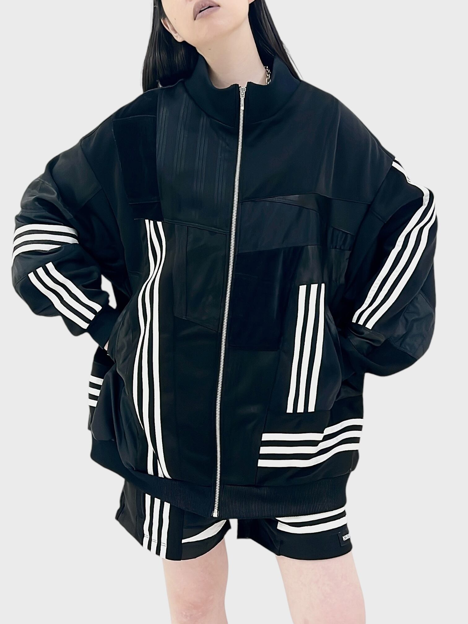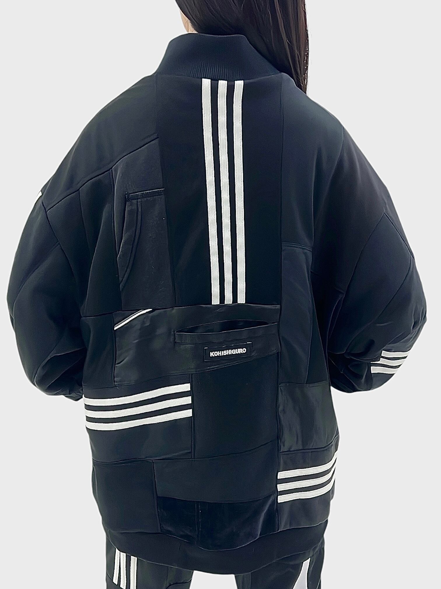 KOH ISHIGURO Upcycled Crazy Patchwork Track Jaket -BLACK- Woman model