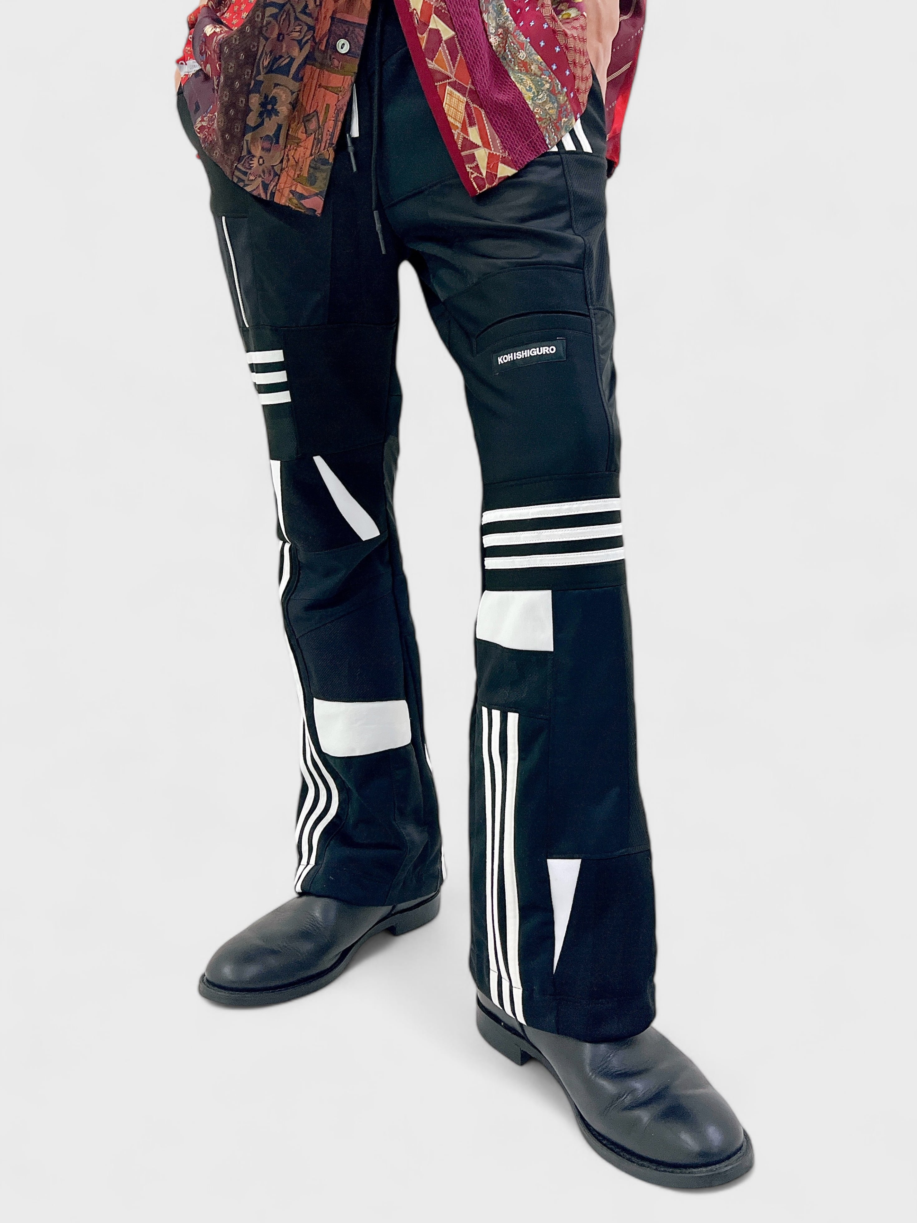 KOH ISHIGURO Upcycled Crazy Patchwork LINE flare pants -BLACK- Mens model